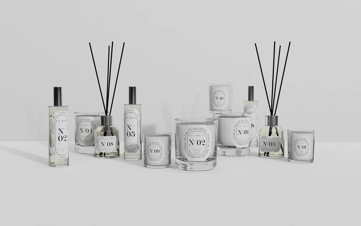 Discover LUMEN's exclusive collection of naturaltwo-wick scented candles, designed to enhance your home with unique, enchanting fragrances. Made in France, the candles combinetraditional quality, ecological commitment and olfactory excellencefor optimal, even burning.