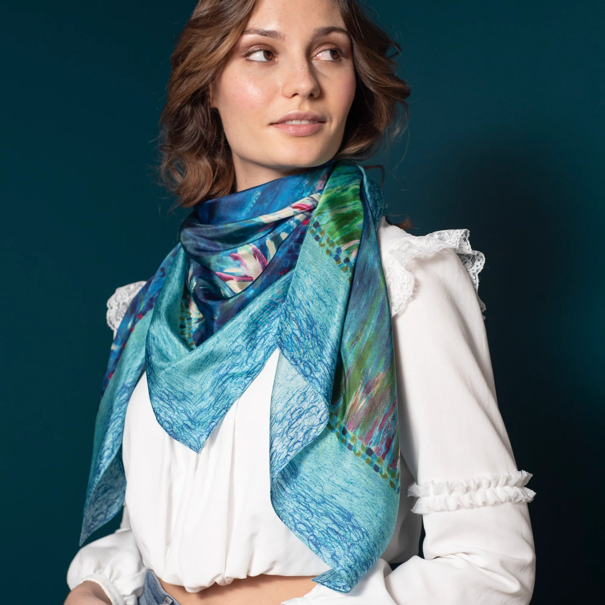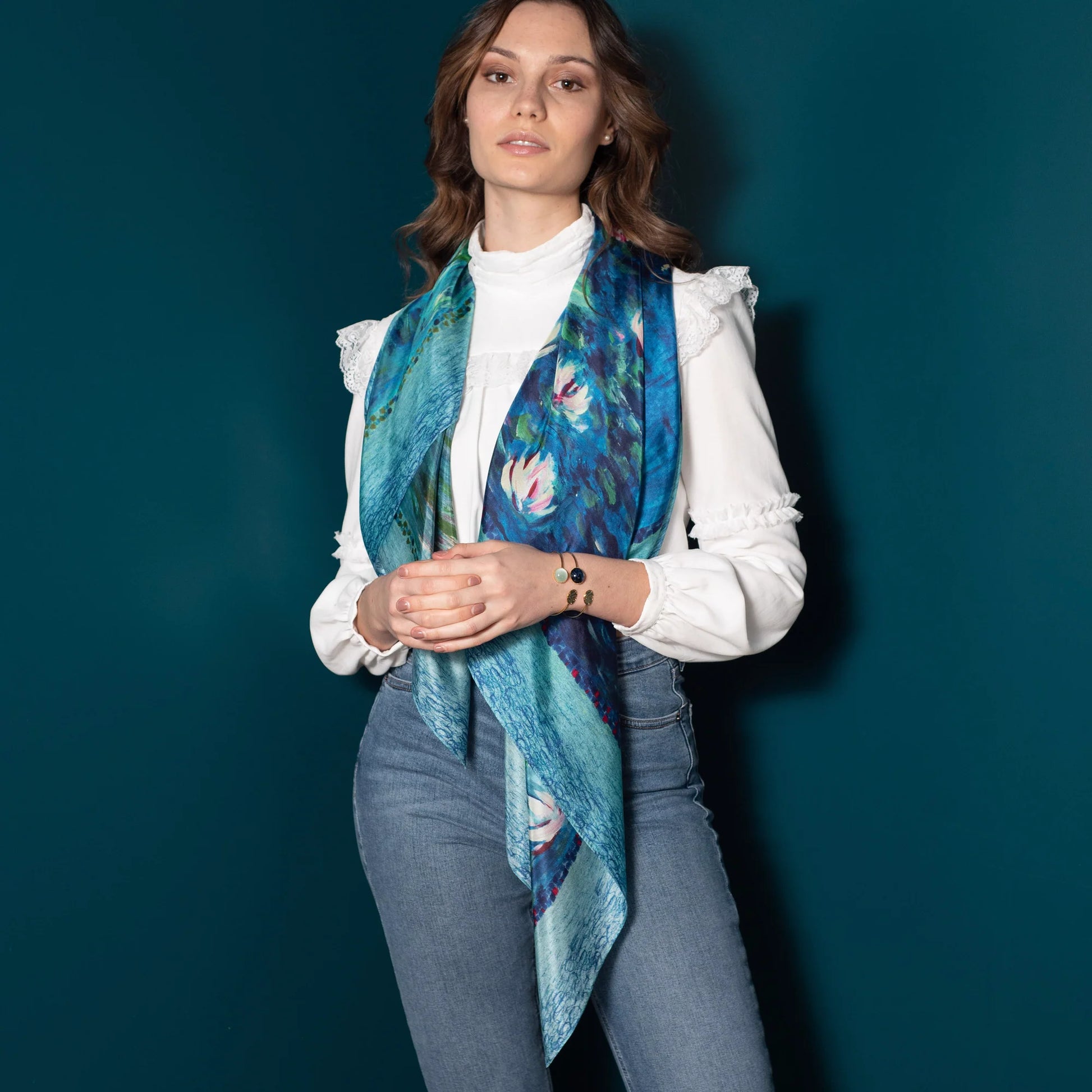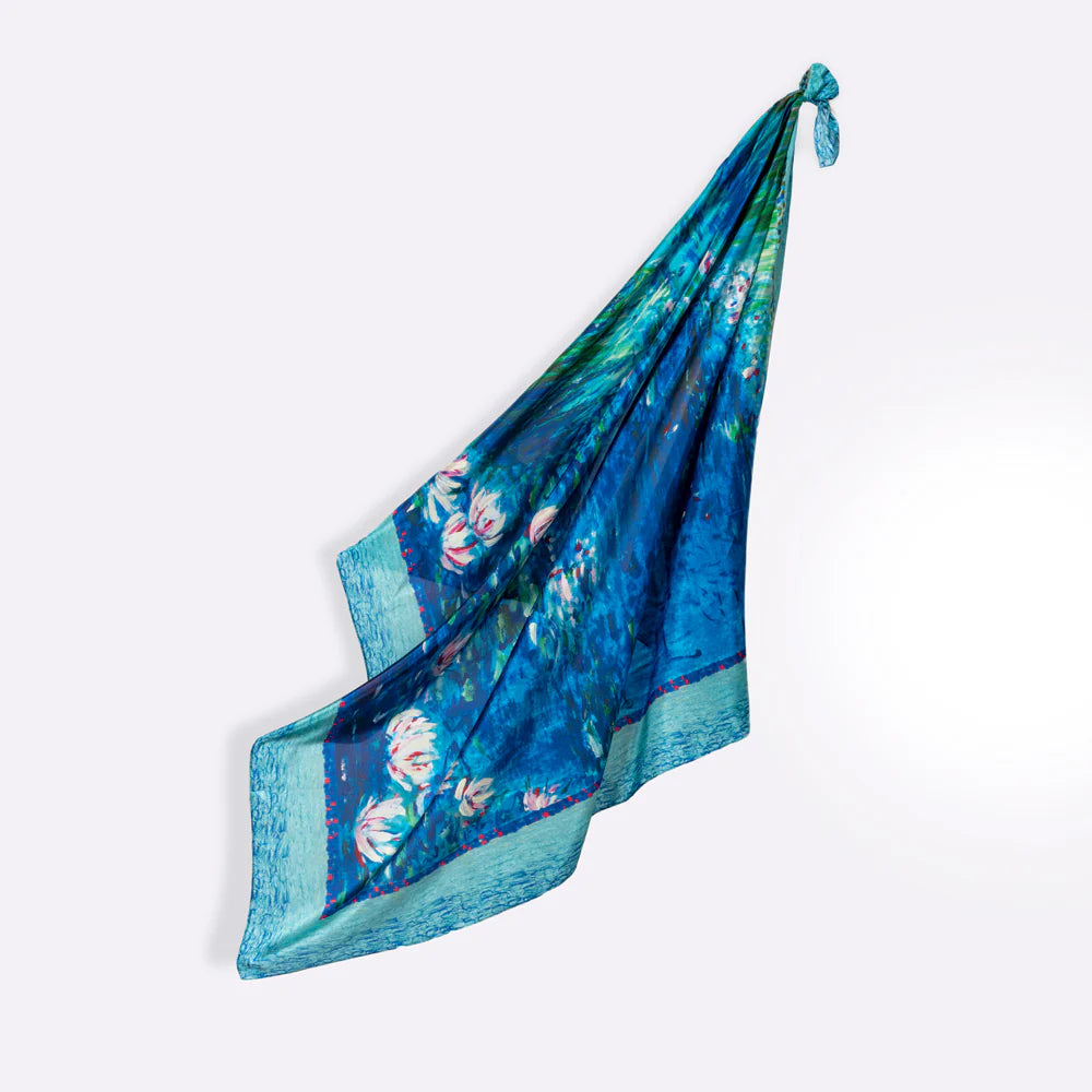Silk scarf inspired by a major work of French cultural heritage: Claude Monet's Water Lilies.