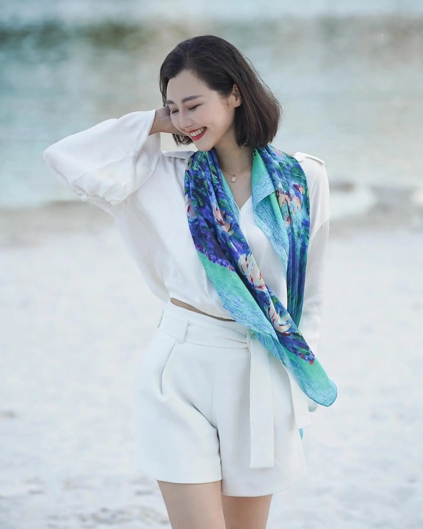 Silk scarf inspired by a major work of French cultural heritage: Claude Monet's Water Lilies.